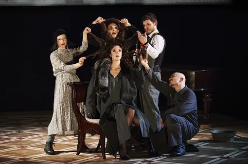 Спектакль Дениса Азарова «Призраки» по психологической драме «Привидения» норвежского драматурга Генрика Ибсена, показывает трагедию распада семьи. В центре повествования — история вдовы Элены Алвинг, открывающей приют в память о своем покойном муже. Однако благородное начинание оказывается омрачено страшными тайнами прошлого, которые вскрываются на протяжении всего действия. Ибсен с большой достоверностью демонстрирует, как общественные предрассудки и двойные стандарты приводят к глубокой человеческой драме. По задумке художника-постановщика Николая Симонова спектакль решен в черно-белой гамме, а важными смысловыми и атмосферными ключами стали тени, вода и лодки.