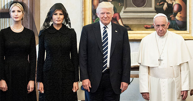 Кто-то решил напомнить о веселом нраве Папы, который при встрече с семейством Трамп тут же испарился.