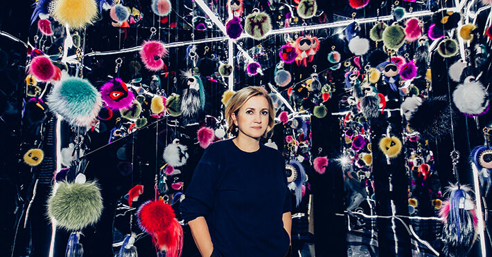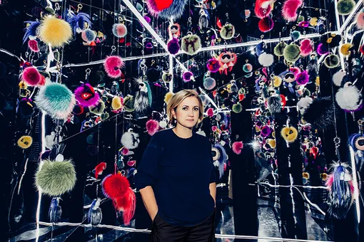 В Московском музее современного искусства сегодня (и всего на две недели) открылась выставка «Fendi Roma: Мастера мечты», рассказывающая историю модного дома и дающая представление о разнообразии творческих процессов, которые кипят в мастерских Fendi. Всего в экспозиции восемь залов, каждый из которых изобретательно оформлен сценографом показов модного дома, Александром де Бетаком. Из обязательных пунктов программы — посмотреть в зале «Рим» фильм «Рукотворная красота» о мастерстве изготовления шуб, изучить эскизы маэстро Карла Лагерфельда, сфотографироваться под импровизированным звездопадом «маленьких монстров» (разноцветные меховые шарики–брелоки Fendi, впервые выпущенные в 2013 году), побывать в воссозданной скорняжной мастерской Fendi и узнать все об изобретении логотипа бренда – двойной литеры F. К меху во всех комнатах можно прикасаться, в том числе к культовым брелокам Little Monsters, которые, как и легендарную сумку Baguette, придумала Сильвия Вентурини–Фенди, внучка основателя модного Дома, директор по аксессуарам Fendi и дизайнер, много лет работающая плечом к плечу с Карлом Лагерфельдом. Мы успели задать Сильвии несколько вопросов, перехватив ее между открытием выставки и коктейлем в новом бутике Fendi в Столешниковом переулке.
