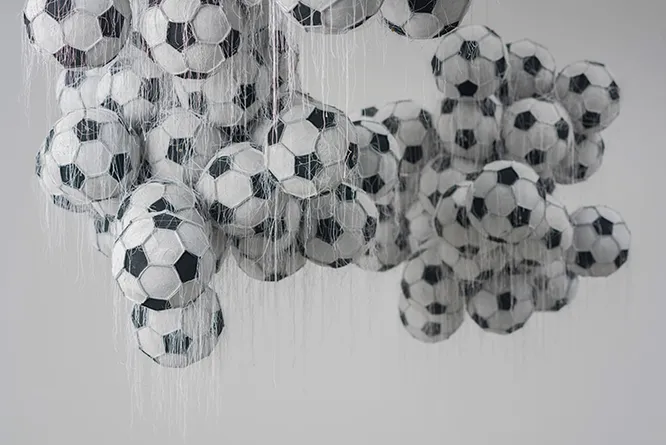 На площадке медиацентра «Зарядье» открылась приуроченная к чемпионату выставка «Мяч в искусстве». Как можно догадаться, все работы, а их больше 60, связаны со спортом. Среди авторов 20 художников со всего мира: от Германии и Испании до Японии и даже Гватемалы.