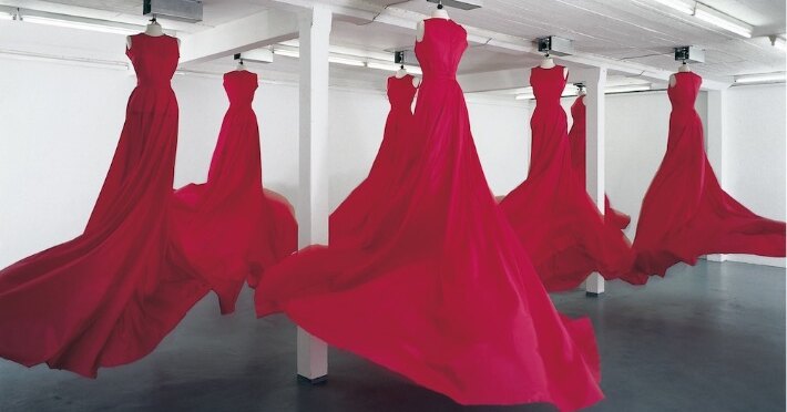 В основе этой впечатляющей инсталляции на стыке моды, искусства и архитектуры — очень простой концепт о взаимоотношениях красоты и простоты. Нехитрый механический процесс — движение — рождает красочный эффект. Несколько манекенов облачены в длинные платья из алой тафты и приведены в движение электрическим мотором под управлением компьютера. Несложные механизмы и отрезы ткани непостижимым путём соединяются в композицию – поэтический образ танца, который так много говорит о человеческой природе.
