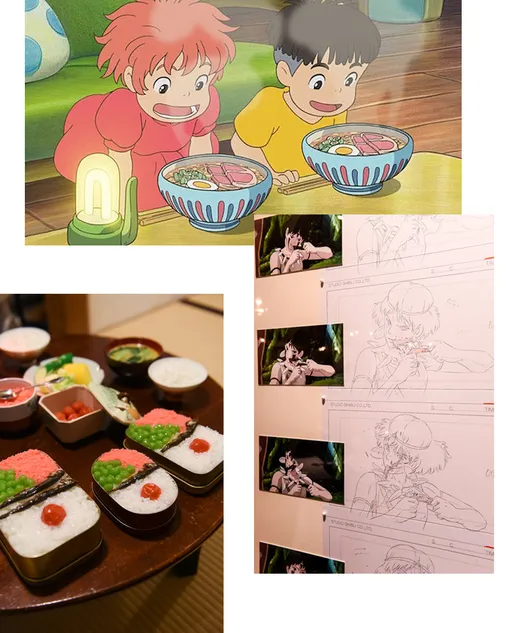 Пища духовная вас не привлекает? Настоящую найдете в токийском музее легендарной анимационной студии Ghibli: здесь проходит странноватая, но заманчивая выставка Delicious! Animating Memorable Meals, посвященная блюдам из мультфильмов Хаяо Миядзаки. Среди экспонатов — мясные деликатесы из «Унесенных призраками», боксы с традиционным обедам из «Моего соседа Тоторо», пирог из «Ведьминой службы доставки», а также зарисовки Ghibli с продуктами и персонажами режиссера, которые их готовят или едят.
