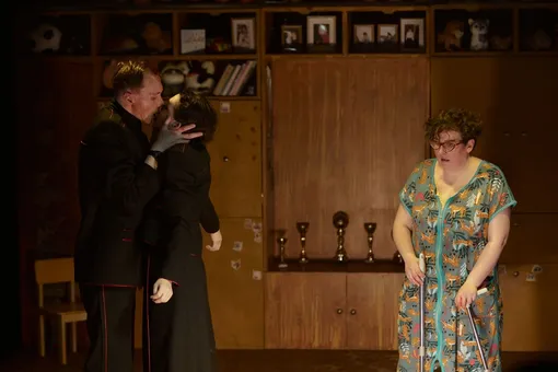 Что происходит с человеком в момент глобального несчастья, и как он переживает самую тяжелую утрату в жизни? Ответ на этот вопрос в своем дебютном спектакле ищет Анастасия Паутова — режиссер и автор проекта @llllllll1111llllll с самыми интеллектуальными мемами на просторах сети. Главная героиня ее постановки — мать. Она носит халат с анималистичным принтом в стиле нулевых и периодически видит галлюцинации, вызванные таблетками. Мужчина и женщина приходят к одинокой матери, чтобы сообщить ей то, что она меньше всего хочет услышать. Кошмарный сон или абсурд, или как обстоятельства меняют человека изнутри и снаружи?
