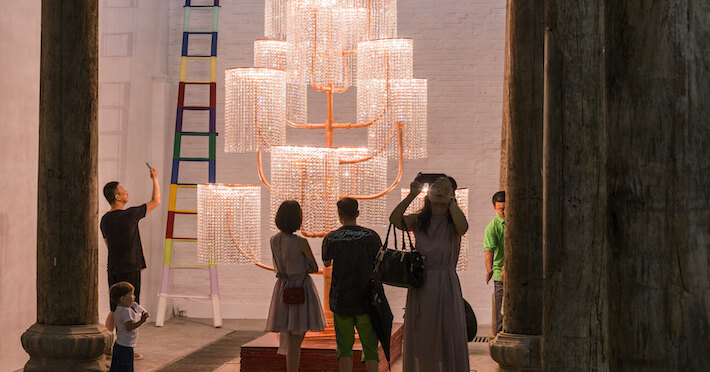 Куратор Цуй Цаньцань разделил выставку на две части: «Ай» расположена в самой Galleria Continua, а «Вэйвэй» – в центре Tang. Она включила в себя, в числе прочего, церемониальный дом династии Ванг, созданный четыре века назад. Под ним расположилась скульптура Chandelier – светильник из меди и хрусталя, высотой превышающий человеческий рост минимум в три раза. Все из того же хрусталя выполнено основание одной из колонн: Ай Вэйвэй вновь показал нам свое увлечение архитектурой, собрав на выставке элементы зданий династии Мин или современных сооружений. Окрашенные в непривычно яркие цвета или показывающие жухлый от времени цвет древесины, они поддерживают то социально-политическое послание, которое художник мастерски зашифровал в своих работах. Без него – нет никакого Ай Вэйвэя.