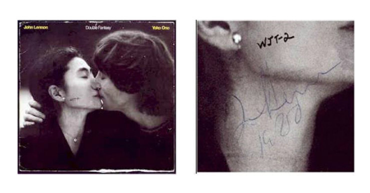 Марк Чепмен произвел смертельный выстрел в Леннона 8 декабря 1980 года у его дома на Манхэттене, предварительно попросив у своего кумира автограф. Бывший гитарист The Beatles расписался на своем новом альбоме Double Fantasy, который он выпустил вместе с Йоко Оно за три недели до гибели. При задержании альбом выпал из куртки Чепмена и был подобран неким мужчиной. Впоследствии пластинка стала одной из улик при расследовании дела. По завершении судебного процесса она была возвращена владельцу, который спустя 19 лет продал ее частному покупателю за 150 тысяч долларов.