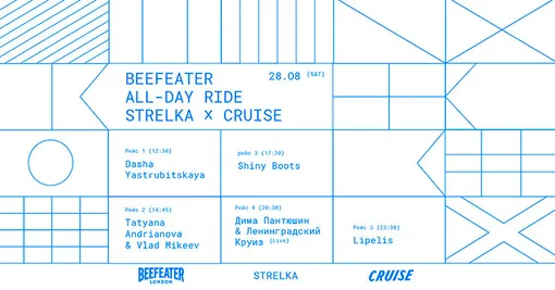 В эту субботу CRUISE by Kuznyahouse тоже провожает лето. На теплоход-ресторан-бар (нужное подчеркнуть) от Kuznyahouse прибудет десант «Стрелки»: ведущая «Серебряного дождя» Дарья Яструбицкая, арт-директор «Стрелки» Таня Андрианова, коллекционер винила Саша Гришин, группа «Ленинградский круиз» и диджей Леонид Липелис. Начало в 12:00 на Английской набережной, финал — уже глубоко за полночь.