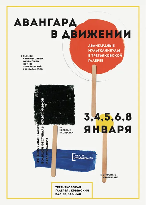 Фестиваль авангарда для детей пройдет во время каникул в Третьяковке. Выставка работ Малевича, Родченко, Татлина и Стейнберга в доступном для детей формате сопоставления с детскими работами учеников художественных студий. Возможно, этого не знали даже вы: подвижная анимационная картинка — самая близкая альтернатива искусству авангардного изображения, которое оживляет формы и краски беспредметного искусства. Поэтому в рамках проекта в Третьяковке покажут специальную программу мультфильмов, а на мастер-классах научат детей «бескамерной» анимации (которую можно смотреть без проявки, печати и сьемки), ожившей живописи (специальные долгосохнущие краски по прозрачному стеклу) и искусству экспериментальной озвучки.
