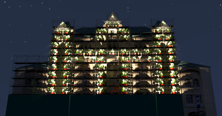 Макет инсталляции «Леса» художницы Анны Кривцовой для фасада исторического здания Политехнического музея