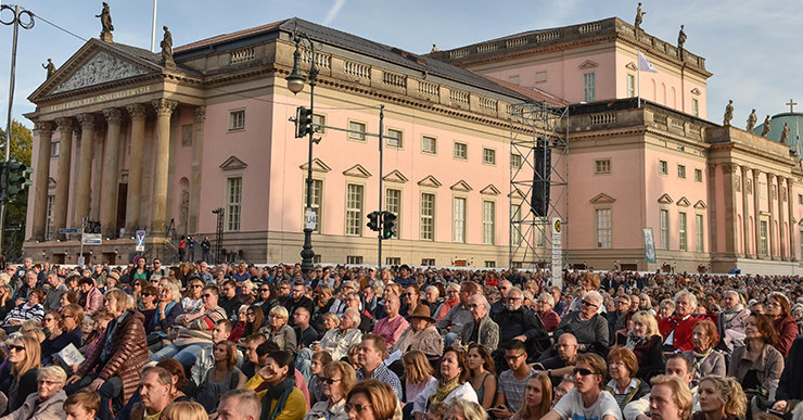 Летом 2010 года Берлинская опера переехала из своего исторического здания на бульваре Унтер-ден-Линден в самом сердце Берлина в театр Шиллера в квартале Шарлоттенбург. Спустя семь лет, в год празднования 275-летия Берлинской государственной оперы, оркестр, хор и весь персонал театра вернулись на свое законное место. Государственная опера Берлина снова распахнула свои двери после длительной реставрации. Это долгожданное событие, приуроченное к 275-летию легендарного оперного театра, город отпраздновал в рамках ежегодного фестиваля BMW «Опера для всех» — серии праздничных концертов Берлинской государственной капеллы и хора под управлением Даниэля Баренбойма: «Я счастлив принять участие в церемонии открытия Берлинской оперы вместе с жителями столицы и многочисленными международными гостями, исполнив настоящую "Оду к радости" из "Симфонии №9 Людвига ван Бетховена".