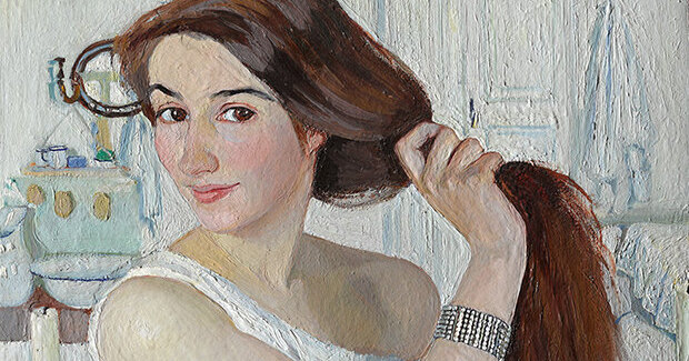 Известность пришла к Серебряковой довольно рано — в 24 года. В 1910-м на выставке Союза русских художников был показан ее хрестоматийный портрет «За туалетом» — Совет Третьяковской галереи тут же приобрел полотно. Эта легкая, пронизанная утренним светом картина не так проста, как кажется. Художница изобразила свое отражение в зеркале — в результате мы смотрим на прихорашивающуюся Серебрякову ее же собственными глазами. Выставку 1910-го, столь важную для карьеры Серебряковой, организовал «Мир искусства», однако сама она присоединится к этому декадентскому обществу лишь год спустя.