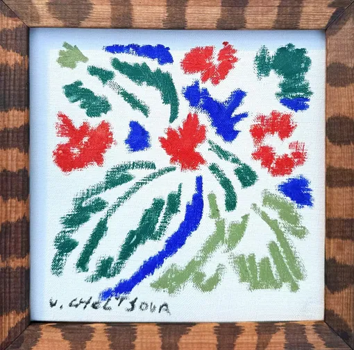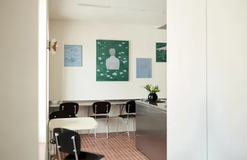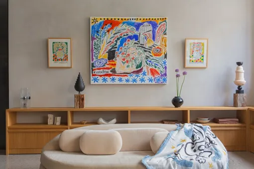Яркая палитра, стройный орнамент и буйные, слегка наивные цветы на полотнах переносят в атмосферу Средиземноморья — приморских городов Италии или Греции. Фоном для искусства служат максимально природные интерьеры галереи 3L Gallery: деревянные стол и стулья, итальянский терраццо и мягкий фактурный текстиль.