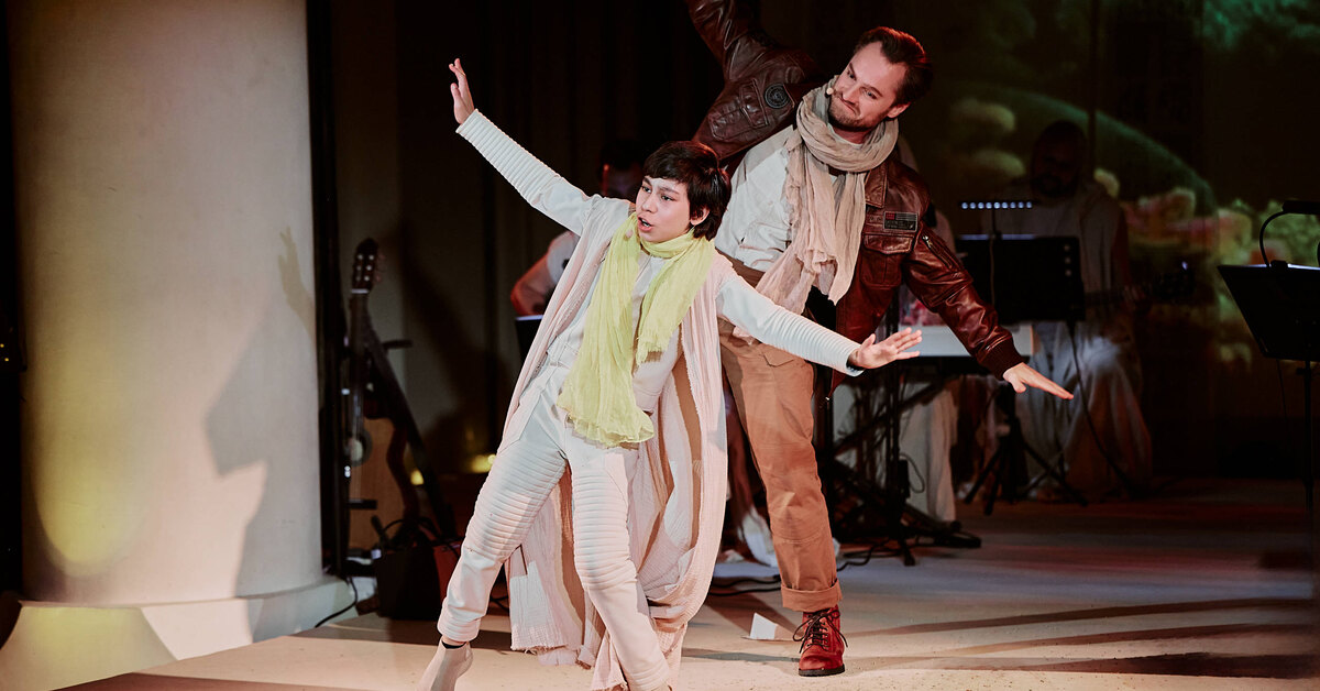 «Маленький принц» Нины Чусовой и проекта Lumisfera — не просто спектакль, а спектакль-концерт. Режиссер подходит к постановке с точки зрения многослойности: сочетает музыкальный, иммерсивный и драматический театры, элементы оригинального жанра, акробатики, хореографии и видео-арта. Музыка здесь выступает как главный проводник: в качестве аудиального сопровождения используются как классические инструменты, так и авангардные — терменвоксы, ханги, тибетские чаши.