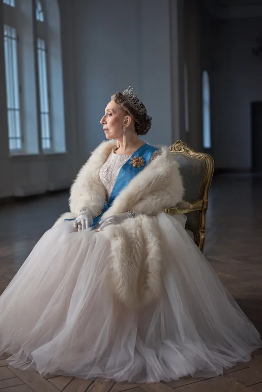Уже появились первые кадры, на которых Чурикова предстает в образе Елизаветы II: на актрисе белое платье, парадная орденская лента и тиара Garrard. Оценить перевоплощение сполна мы сможем после премьеры «Аудиенции» 25 апреля.