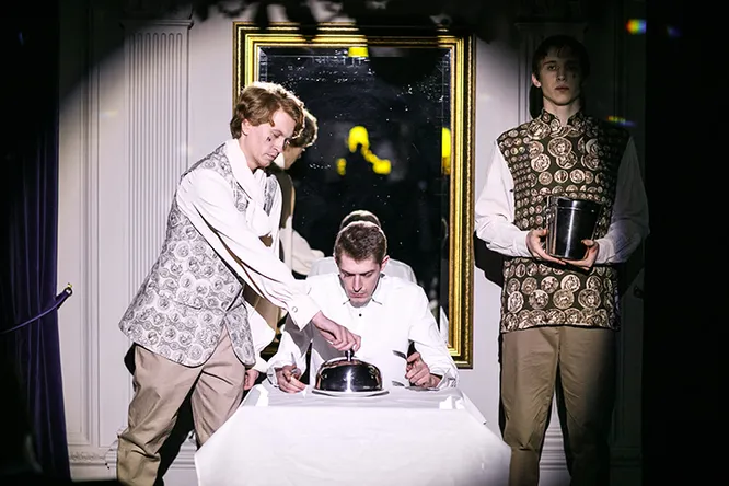 В минувшем году иммерсивный театр окончательно перестал быть диковинкой и перекочевал в ряды массовых культурных хитов. Максим Диденко заставил публику прятаться под масками на «Черном русском», а создатели «Вернувшихся» — бродить по закоулкам старинного московского особняка вместе с персонажами Генрика Ибсена. В этом марте на набережной питерской реки Мойки родился новый иммерсивный феномен — спектакль-ужин молодого режиссера Талгата Баталова «Декабристы». TheSymbol.ru отправился на аппетитный суд над князем Трубецким и теперь докладывает, каково это — судить историю под бокальчик игристого.
