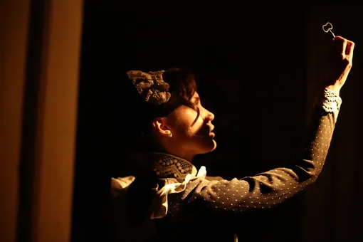 Итак, пьеса Ибсена вернулась в популярном сегодня жанре иммерсионного театра. Московским зрителям предлагается бродить по четырем этажам просторного особняка в Дашковом переулке по всем правилам уже знакомого москвичам формата: одновременно происходит несколько действий, и вы вольны выбирать, за кем из актеров следить. Вы — в масках и молчите, словно призраки, они — разговаривают, двигаются каждый в своем режиме и могут вас трогать. Если играть все линии спектакля подряд, он будет идти 9 часов, а для каждого из зрителей он продлится примерно два с половиной.