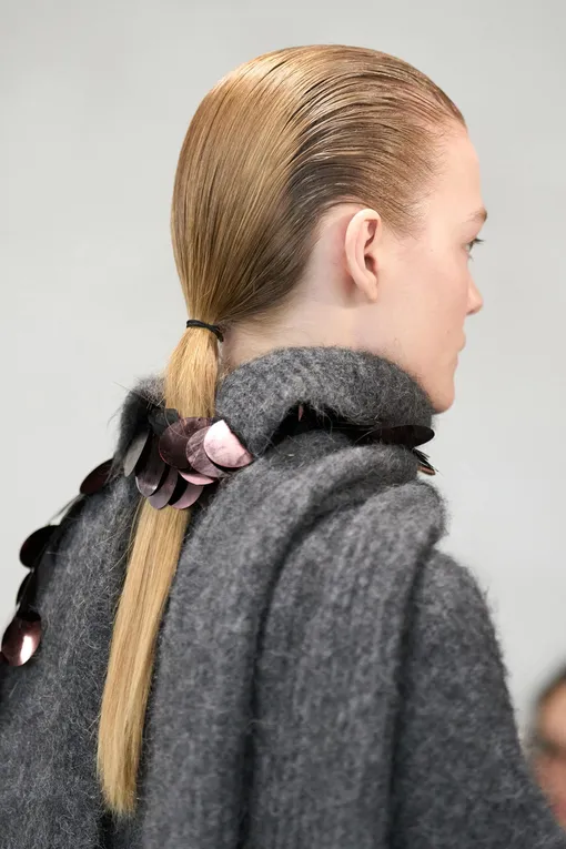 Времена жесткого диктата трендов давно позади: теперь из сезона в сезон в числе самых актуальных мы встречаем совершенно противоположные тенденции. Приталенные силуэты отлично уживаются на одном подиуме с гипертрофированным оверсайзом, а высокие каблуки — с моделями на плоской подошве. Обстановка на бьюти-арене ничем не отличается: модные показы говорят нам в первую очередь прислушиваться к себе и собственным желаниям, а не к строгим правилам, единственно верным для всех. Так, например, одной из самых ярких бьюти-тенденций сезона осень-зима 2025/26 стали неаккуратные прически с нарочито «пушистыми» волосами, выбивающимися прядями и даже «петухами» в хвостах и пучках. Стилисты по волосам призывают нас перестать гнаться за идеальным образом и позволить себе расслабиться, даже если укладка получилась не настолько безупречной, как вы хотели. Мы этот посыл всячески поддерживаем, однако каждый имеет право выбирать. И если растрепанные волосы — не то, чего вам хочется именно сейчас, у стилистов есть альтернатива — гладкие прически. «Зализанные» большим количеством геля и лака волосы держатся в списке актуальных бьюти-тенденций уже не первый сезон. Так что если вам по вкусу прическа «в стиле Беллы Хадид», вы можете смело продолжать носить ее этой осенью. А мы расскажем о самых актуальных вариациях гладких причесок и средствах, которые помогут сделать их самостоятельно.