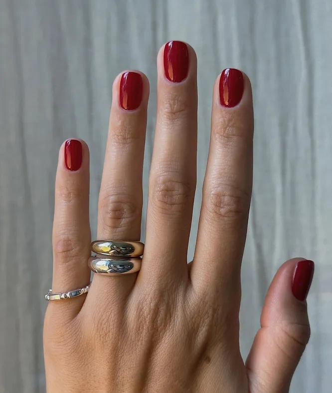 Красный уже стал вневременной классикой, которая едва ли когда-нибудь потеряет свою актуальность. Маникюр в этом цвете выглядит роскошно даже в однотонном исполнении. Так что смело выбирайте любой оттенок на свой вкус: от ярко-красного до глубокого винного — все варианты подойдут как для выхода, так и на каждый день.