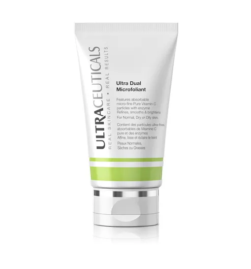 Последняя новаторская разработка лаборатории Ultraceuticals — отшелушивающий крем Ultra Dual Microfoliant, который работает по двум направлениям: стимулирует естественную регенерацию кожи и удаляет все возможные загрязнения. В составе витамин С и энзим Бромелайн (мощный фермент, полученный из стебля ананаса). Именно они отвечают за супергладкую кожу, однородный рельеф, здоровый цвет лица и, конечно же, сияние. Подходит для всех типов кожи.
