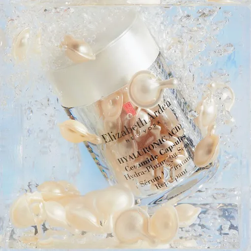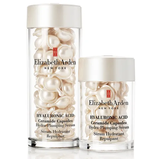 Их сбалансированное сочетание мы и находим в капсулах с сывороткой Hydra Plumping Serum от Elizabeth Arden. Она разработана на основе технологии Double-Lock Hydration System ™ — двойной блокировки гидратации: гиалуроновая кислота, как магнит, впитывает влагу, а церамиды укрепляют кожный барьер и удерживают ее. Молекулы гиалуроновой кислоты в капсулах в 8 000 раз меньше обычных, а значит, проникают гораздо глубже, а именно в роговой слой кожи. Затем они «активируются», то есть расширяются и, борясь с обезвоживанием ткани, «разглаживают» ее изнутри.