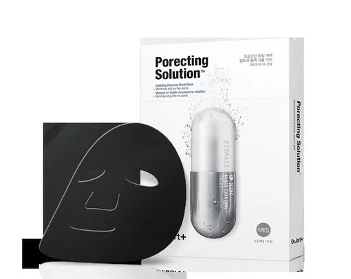 Черная тканевая маска Porecting Solution предназначена для глубокого очищения и сужения пор. Пропитка обогащена активной кислородной сывороткой с экстрактами угля бьянгтана и мыльного дерева, которая заставляет маску активно пузыриться при нанесении. Эти бурлящие пузырьки и отвечают за эксфолиацию и очищение пор. Помимо этого маска увлажняет кожу, придает ей сияние и выравнивает тон.