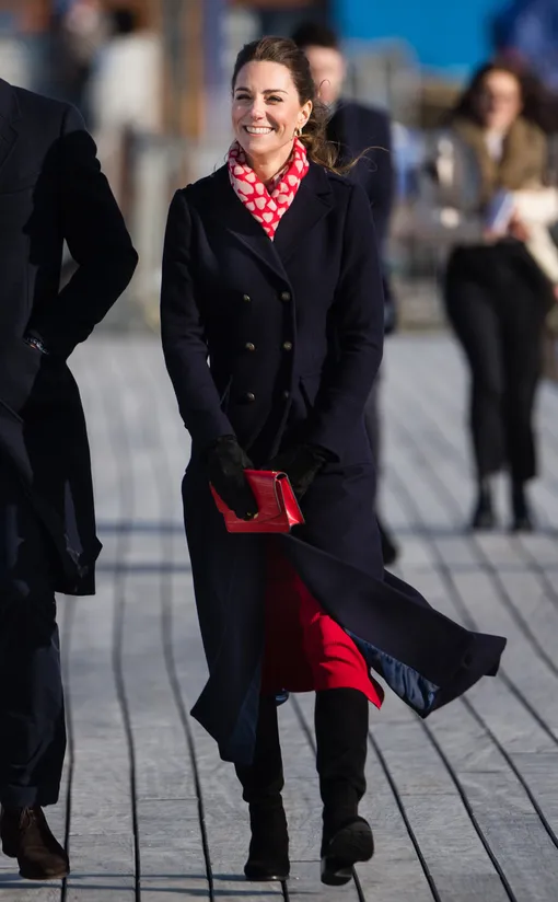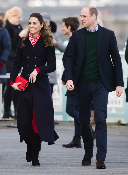 Пока королева Елизавета II оказывает поддержку принцу Гарри и Меган Маркл, ее старший внук и Кейт Миддлтон вынуждены взять на себя все официальные визиты. Сегодня герцог и герцогиня Кембриджские приехали в Южный Уэльс. Свое путешествие супруги начали с мыса Мамблс, где посетят спасательную станцию и станут зрителями масштабных учений, а затем отправятся в центр валлийской металлургической промышленности Порт-Толбот. Перед насыщенной программой наши герои прогулялись по набережной: Кейт поплотнее укуталась от порывов ветра в пальто Hobbs в морском стиле, из-под которого виднелось алое платье от Zara.