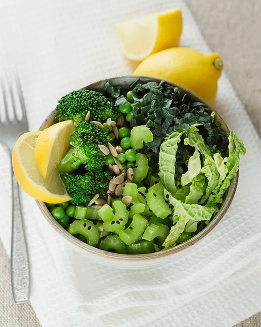Богатые антиоксидантами и витамином С зеленые листовые овощи известны своим положительным влиянием на общее самочувствие и остроту ума. Кроме того, брокколи, авокадо и капуста являются мощными борцами с раком. Они содержат витамин К, который помогает при недостатке концентрации, предотвращает болезнь Альцгеймера. Шпинат и капуста также содержат стимулирующие мозг витамины группы В и железо, которые помогают переносить кислород в мозг.