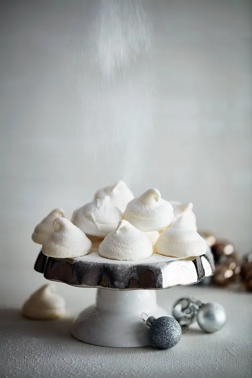Проще не бывает: понадобится только 3 белка и 150 граммов сахарной пудры. Взбейте белки в густую крепкую пену в чистой сухой посуде (в белках не должно быть следов желтков!), затем по ложке добавьте пудру, продолжая взбивать. Выложите на противень с помощью кондитерского мешка и сушите в духовке на низкой температуре (примерно 120 градусов) около часа.
