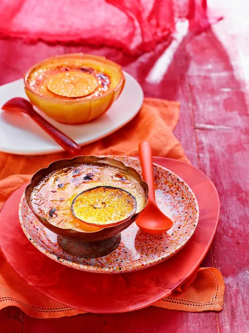 Для него понадобится пол-литра жирных 33-процентных сливок, 70 граммов коричневого сахара (и еще немного для украшения), ваниль в стручке и 4 желтка. Взбейте желтки с сахаром миксером, а сливки с ванилью разогрейте в духовке на 170 градусах без кипячения. Добавьте немного сливок к желткам для разжижения, но так, чтобы не обжечь желтки. Затем смешайте обе части, процедите через сито, разлейте по формам и выпекайте в духовке на водяной бане 35—40 минут. Остудите 4 часа в холодном месте, а затем посыпьте сахаром и фламбируйте.