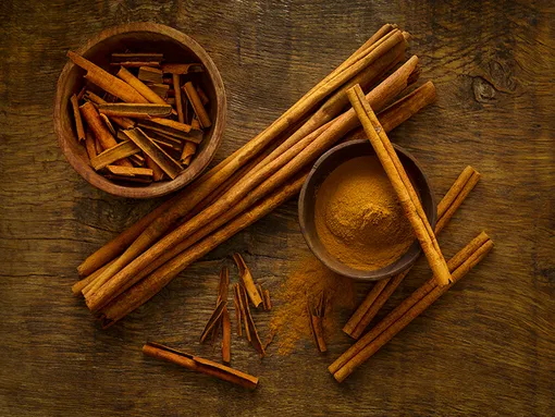 Корица — это ароматная специя, которая добыввается из коры деревьев из рода Cinnamomum. Люди веками использовали ее в традиционной медицине для лечения сердечных заболеваний, включая высокое кровяное давление. Хотя до конца не известно, как корица снижает кровяное давление, исследования на животных показывают, что она помогает расширять и расслаблять кровеносные сосуды. Обзор 9 исследований с участием 641 участника показал, что прием корицы снижает систолическое и диастолическое артериальное давление в среднем на 6,2 мм рт.ст. и 3,9 мм рт.ст. соответственно. Этот эффект был сильнее, когда люди постоянно принимали корицу в течение 12 недель. Более того, обзор 3 исследований с участием 139 участников с диабетом 2 типа изучал влияние приема корицы. Те, кто принимал 500–2400 мг корицы ежедневно в течение 12 недель, испытали в среднем снижение систолического артериального давления на 5,39 мм рт.ст. и диастолическое артериальное давление на 2,6 мм рт.ст. Корицу легко добавлять в еду — от. напитков до выпечки. Другой вариант — концентрированные пищевые добавки с корицей.