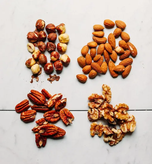 В состав миндаля, грецких орехов и кешью входит витамин Е, который сохраняет водный баланс кожи, тем самым делая ее упругой. Содержание железа и цинка обеспечивает поставку кислорода клеткам и препятствует старению кожи. Регулярное употребление небольшой горсти орехов сделает кожу гладкой и сияющей.