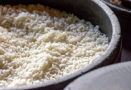 Рис — одна из самых популярных круп, которая есть дома практически у всех. Однако даже такой понятный продукт может нести организму как пользу, так и вред — в зависимости от способа приготовления. Начнем с того, что белый рис в список здоровых продуктов вообще не попадает: он содержит большое количество углеводов, крахмала, а пользы для организма практически никакой не несет. А вот бурый рис — настоящий кладезь витаминов и минералов. Поскольку при его обработке (которая практически отсутсвует) не разрушается оболочка зерна, бурый рис богат клетчаткой. Она необходима для поддержания здоровья ЖКТ, а также способствует долгому чувству насыщения, снижая риск переедания.