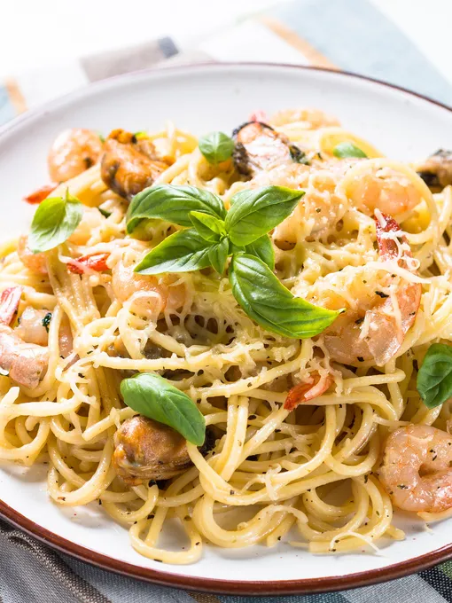 Паста с морепродуктами в сливочном соусе, бейгл с лососем и творожным сыром и даже ролл Филадельфия — все эти вкусные и любимые многими блюда, к сожалению, попадают в стоп-лист. Специалисты по питанию настоятельно не рекомендуют сочетать рыбный белок и омега-3 жирные кислоты с молочным белком. Такой микс обеспечит вас тяжестью и болями в желудке, а избавиться от них будет крайне тяжело.