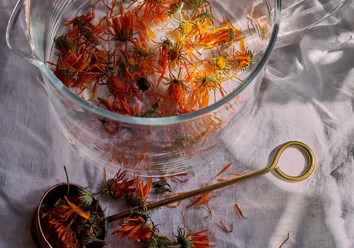 Как и мята, календула — натуральный спазамолитик, эффективно снимающий боль в животе. Кроме того, яркие цветки обладают уникальными успокаивающим и противовоспалительным свойствами. Календула благотворно влияет на слизистые желудка и кишечника, снимая вздутие и тяжесть, а при регулярном употреблении обеспечивает профилактику различных заболеваний пищеварительной системы.