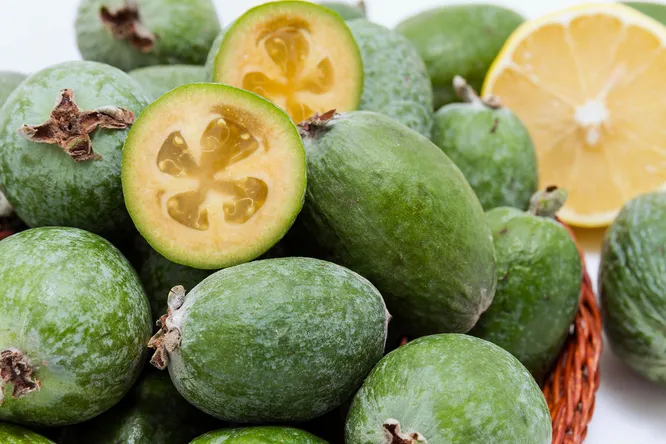Фейхоа — загадочная ягода, о которой многие слышали, но немногие видели — настоящий кладезь витаминов и антиоксидантов. Сейчас фейхоа набирает все большую популярность, как среди диетологов, так и среди адептов правильного питания. Ее добавляют в салаты, горячие блюда, десерты, делают из нее варенье и мармелад и едят в сыром виде. Чем так полезна фейхоа и как добавить ее в свой рацион, рассказываем. нашем материале.
