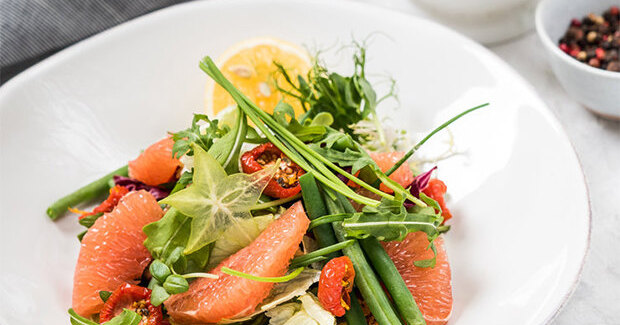 17:00–18:00 Микс из кенийской фасоли, листового салата с соусом гамадари и красного апельсина