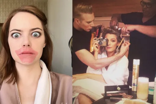 Вчера, 8 января, в отеле Беверли-Хилтон, что в Беверли-Хиллз, прошла 74-я церемония вручения наград «Золотой глобус». Это одно из самых громких событий в киноиндустрии, и звезды проводят часы в подготовке к торжественному выходу на красную дорожку. Однако для большинства зрителей все закулисье остается ха кадром... Ну, по крайней мере, так было раньше. С появлением в нашей жизни соцсетей мы смогли увидеть самое интересное – сам процесс создания гламурных звездных образов. Причем селебрити сами с удовольствием делятся забавными фото, не боясь предстать перед своими поклонниками с тканевой маской на лице или бигуди в волосах. Пока другие рассматривают наряды и идеальные макияжи, в которых звездные гости предстали перед камерами репортеров, мы предлагаем куда более увлекательное зрелище – лучшие Instagram (Социальная сеть признана экстремистской и запрещена на территории Российской Федерации)-кадры закулисья из первых рук.