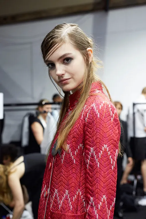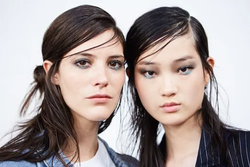 Для создания эффекта «обнаженной» кожи на все лицо щедро нанесите бальзам Armani Prima Glow-On. Он не только придаст здоровое сияние, но и отлично увлажнит кожу. Мелкие несовершенства и темные круги скроет подсвечивающий консилер High Precision Retouch. Для усиления эффекта gym skin на скулах моделей использовали жидкий хайлайтер Fluid Sheer. Завершающий штрих — рассыпчатая пудра Luminous Silk Powder, которой прошлись только по T-зоне.