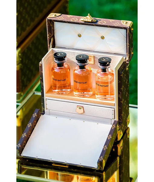 Коллекция парфюмов, как и все в Доме Louis Vuitton, связано с путешествиями. Важная часть ДНК бренда проявляется в каждой линейке по-разному: так, легендарный парфюмер Жак Кавалье-Белльтруд при создании новинки Cœur Battant решил отойти от прямолинейной интерпретации темы. Cœur Battant не приключение, но его волнительное предвкушение, когда от неизвестности захватывает дух, а сердце начинает биться сильнее.