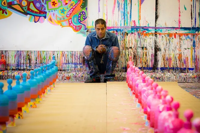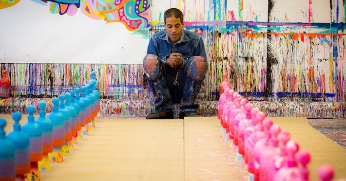 Джон Эндрю Перелла, более известный как JonOne, расписывает все: от холстов до автомобилей Rolls-Royce и «Жигулей» – последнее светская публика в 2013 году могла наблюдать на открытии его выставки в столичной галерее Boccara. Работа над литровыми флаконами Guerlain стала новым свидетельством его виртуозного владения баллончиками и страсти к своему делу: сто коллекционных экземпляров, оформленных и подписанных им лично, с января представлены в бутике бренда на Елисейских полях.