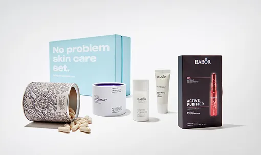 Косметологи хором твердят, что проблему акне нужно решать комплексно снаружи и изнутри. Сет «No problem skin care set» как раз про это. Он состоит из продуктов-бестселлеров для проблемной кожи Babor: энзимной пудры для деликатного очищения, ампул Purifier с ихтиолом и маслом чайного дерева, крема Skinovage Moisturizing cream и БАДа Аккумакс, который уменьшает выделение кожного секрета и оказывает противовоспалительное действие как раз изнутри. Набор представлен эксклюзивно в сети Золотое яблоко.