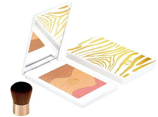 Классический вариант для приведения аферы под названием «Я только что из отпуска» в действие. С помощью палетки можно выполнить полноценный макияж: бронзовый оттенок для создания легкого загара, нейтральный с сияющими микрочастицами, чтобы освежить лицо, и нежно-розовый для юношеского румянца. Цвета можно смешивать или наносить по отдельности с помощью удобной кисти кабуки, которая идет в комплекте.