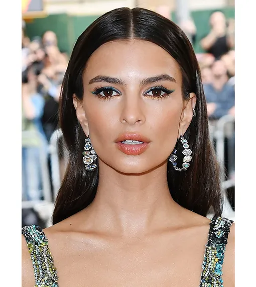 В этом году Эмили вопреки ожиданиям продемонстрировала на красной дорожке отнюдь не самый свой откровенный наряд. Ставку модель сделала на макияж. Ярко-бирюзовые стрелки вторили цвету платья Marc Jacobs, а аккуратно убранные назад волосы не отвлекали внимания от выразительных глаз.
