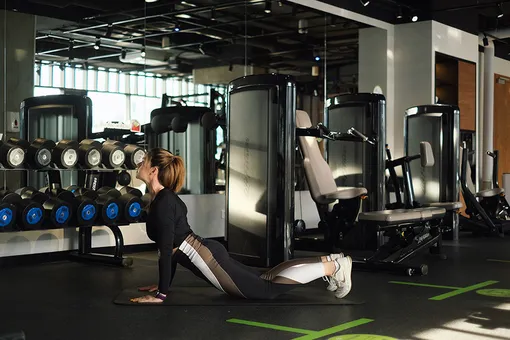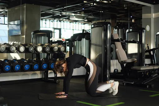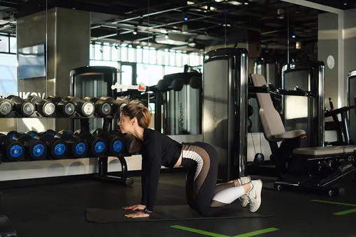 Примите положение «квадрат»: расположите кисти под плечами, колени под тазовыми костями. Медленно округлитесь в спине, эмитируя дугу в позвоночнике, как у шипящей кошки. Начинайте двигаться от крестца к шее, а затем в обратную сторону. Выполняйте движение позвонок за позвонком, направив взгляд вверх. В медленном темпе сделайте 10-12 повторений.