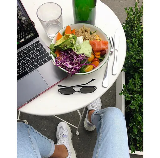 Для легких перекусов прекрасно подходят свежие хрустящие овощи: морковь, сельдерей, красный перец. Могу взять с собой яблоко или горсть орехов. Также считаю незаменимым сок сельдерея, который, как известно, обладает удивительными лечебными свойствами. Он не только замедляет естественные процессы старения, но также содержит большое количество витаминов, белков, кислот и минералов.