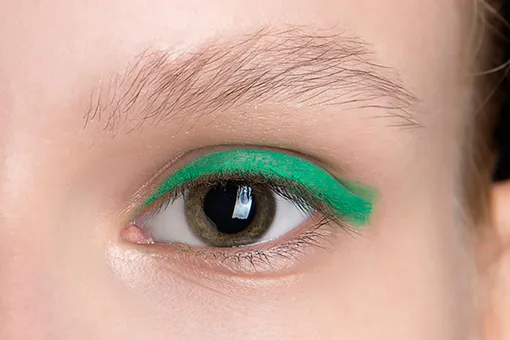 Здесь выбираем цвета по такому же принципу, что и для голубых глаз — по контрасту. Зеленый и красный находятся на диаметрально противоположных сторонах цветового круга, а значит, чтобы сделать зеленый цвет глаз ярче, надо использовать красный во всех его вариациях. Бордовый, бронзовый, фиолетовый, сливовый — это те оттенки, которые вам нужны. Рекомендуем подчеркнуть межресничное пространство черной или темно-коричневой подводкой, чтобы избежать эффекта больных, уставших глаз.
