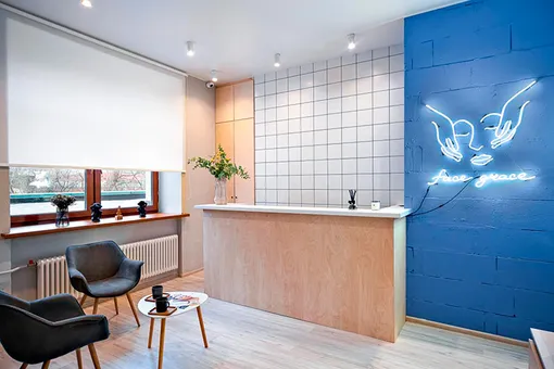 Face Grace - это студия массажа. Создатели убеждены, что среди его преимуществ перед другими космологическими техниками: снятие мышечного напряжения, лифтинг, улучшение цвета. Гостям предлагают три вида процедуры: forever young, movie star и royal. Все они различаются по длительности и включенным уходовым средствам. В качестве поставщика косметики основателями студии был выбран профессиональный корейский бренд Eclado, известный на рынке уже более 20-ти лет.