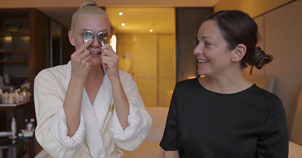 Следующий этап — увлажнение. Луис советует отдавать предпочтение сывороткам, так как они эффективнее справляются с этой задачей, чем кремы. Карли использует Fluide VIP O2, Biologique Recherche, но опять же ее можно заменить на любую другую. Завершающий этап ухода — массаж специальными охлаждающими ложками, чтобы убрать отеки и покраснения. Если у вас таких в арсенале нет, подойдут и обычные столовые, которые предварительно нужно оставить на ночь в морозильнике.