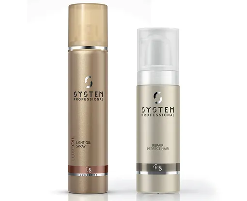 3. Финальный этап — разглаживаем челку и расчёсываем её в том направлении, которое кажется вам наиболее комфортным. А затем собираем все волосы в растрёпанный пучок, который обрабатываем легким спреем L6, System Professional. Это масло-спрей не только дарит им благородное сияние, но и питает и разглаживает.