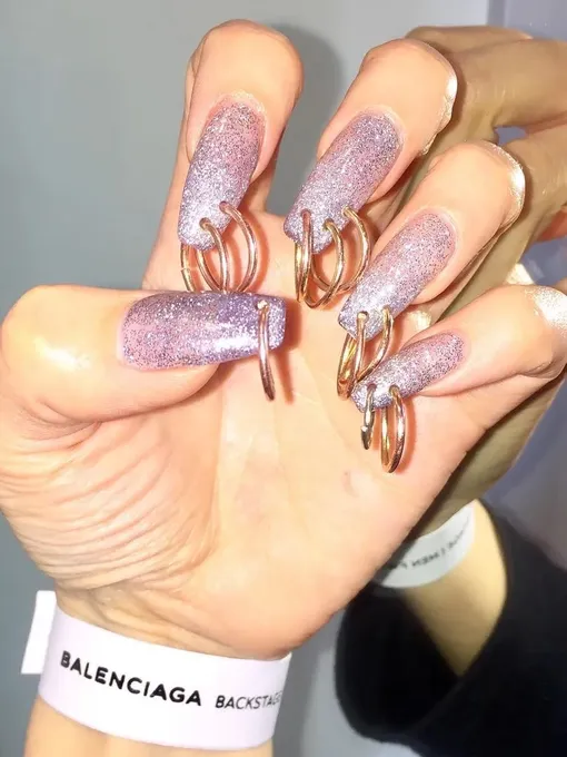 Маникюр, украшенный пирсингами разных форм и размеров появился на модной арене пару сезонов назад. И если тогда это был пускай и экстравагантный, но все-таки тренд, то сейчас он выглядит неактуально. К тому же, металические колечки ужасно неудобны в носке: вы постоянно рискуете больно зацепить волосы или оставить затяжку на любимом свитере.