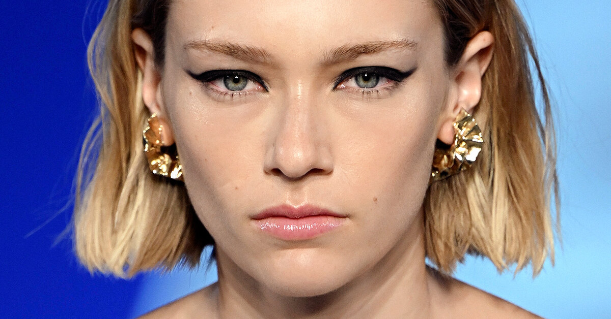 Стрелки никогда не покидают списков трендов — меняется только актуальная форма. Этой весной стоит забыть о «микрострелках», кончик которых едва выходит за уголок глаза, и смело вести его дальше по направлению к виску. Толщина стрелки при этом может быть любой, здесь все зависит от ваших предпочтений. Длинные стрелки не только выглядят модно, но и эффектно подчеркивают глаза, делая их визуально больше.